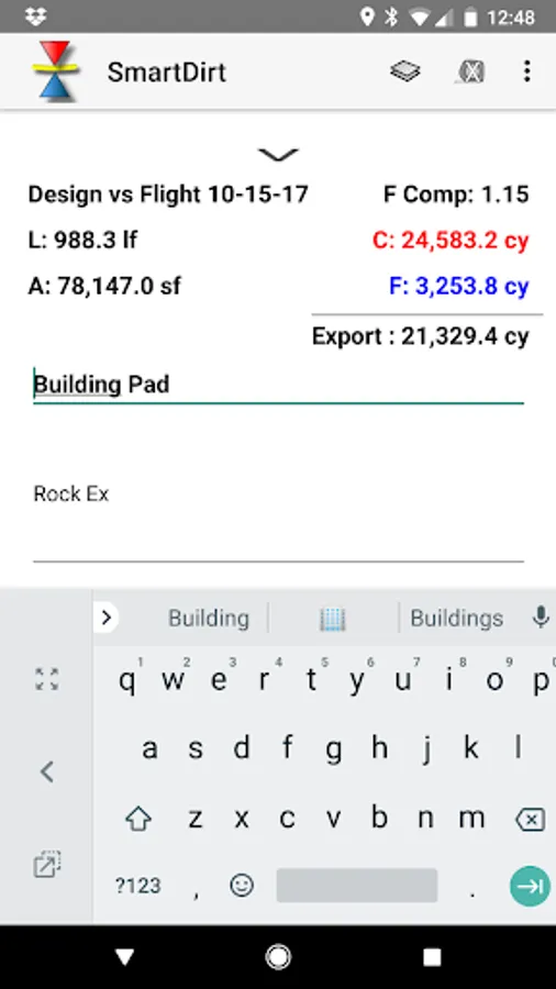 Measure slope or distance with a tap or estimate earthwork quantities with the measure tool.