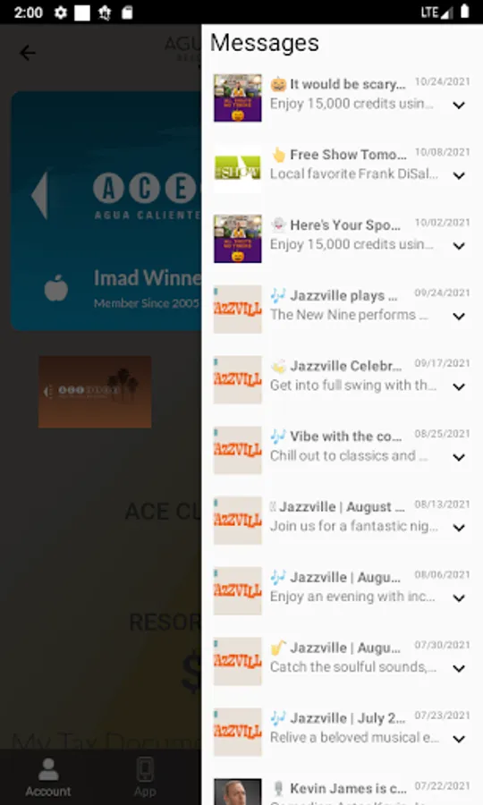 Once you sign up for the ACE Players Club, you can login to the app and see all your offers, promotions, ACE Points as well as your Resort Credits.