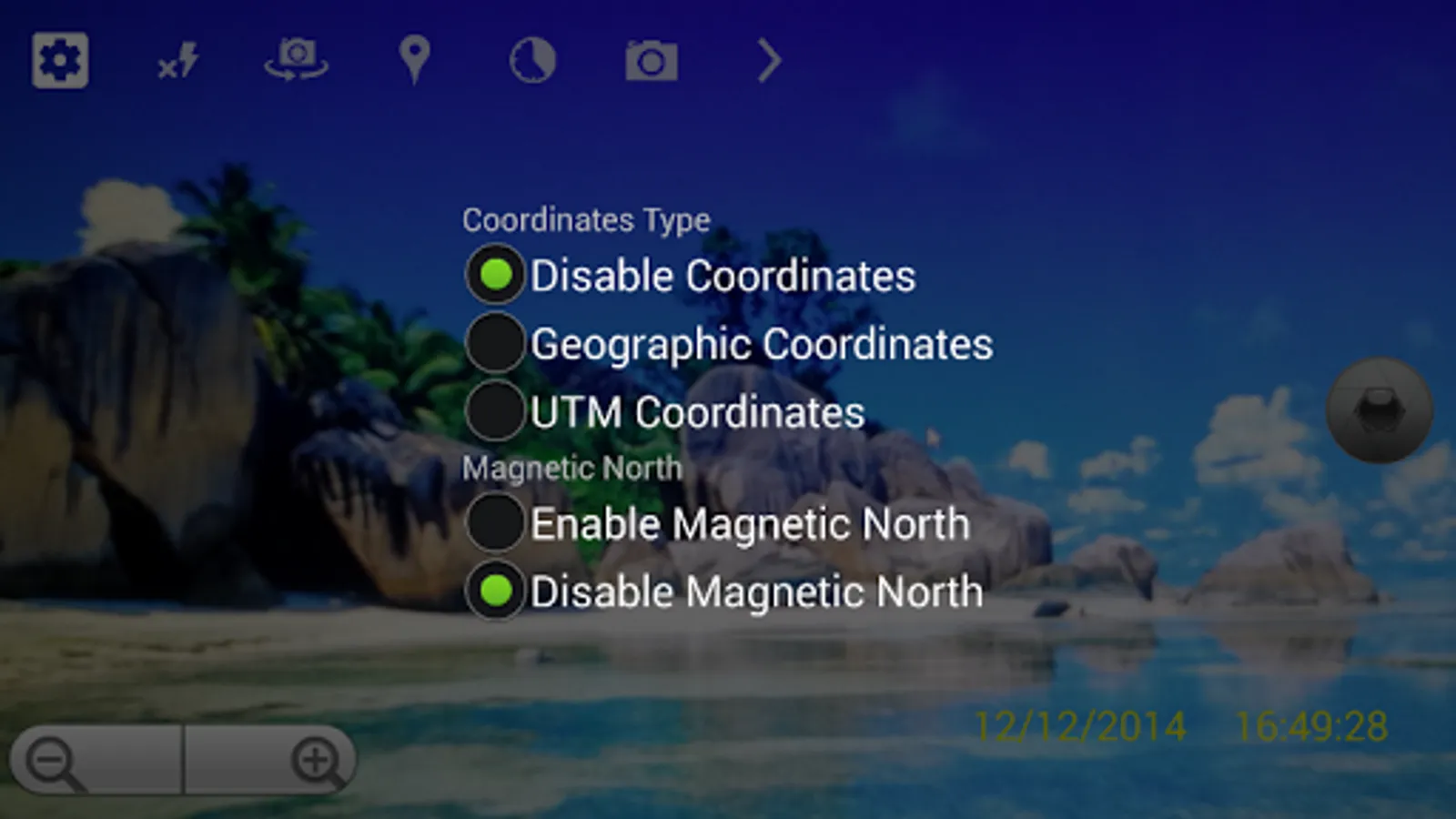 The DataCam is an Application Camera that helps you take your photos with the current date and time, the coordinates of the location and indicates the magnetic north.