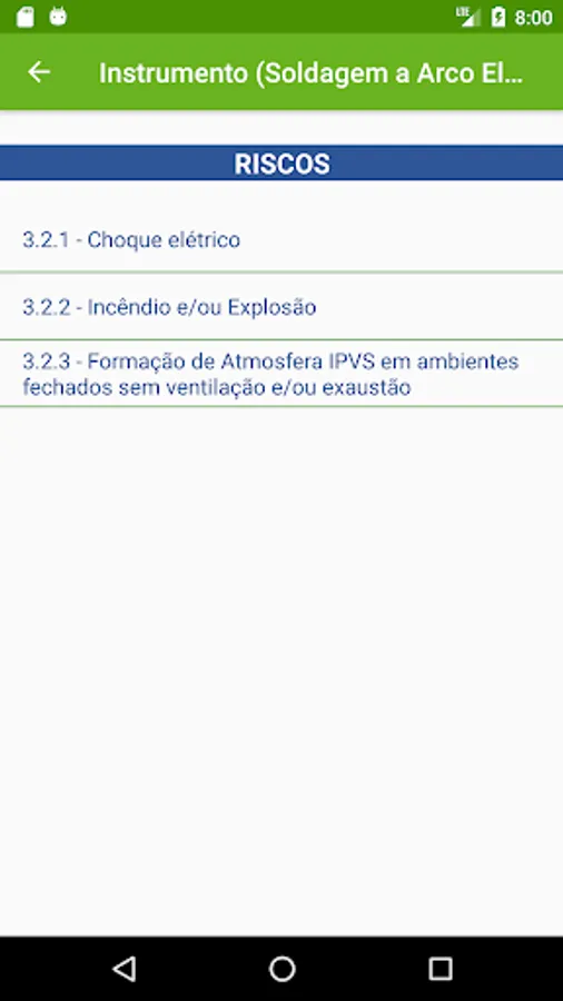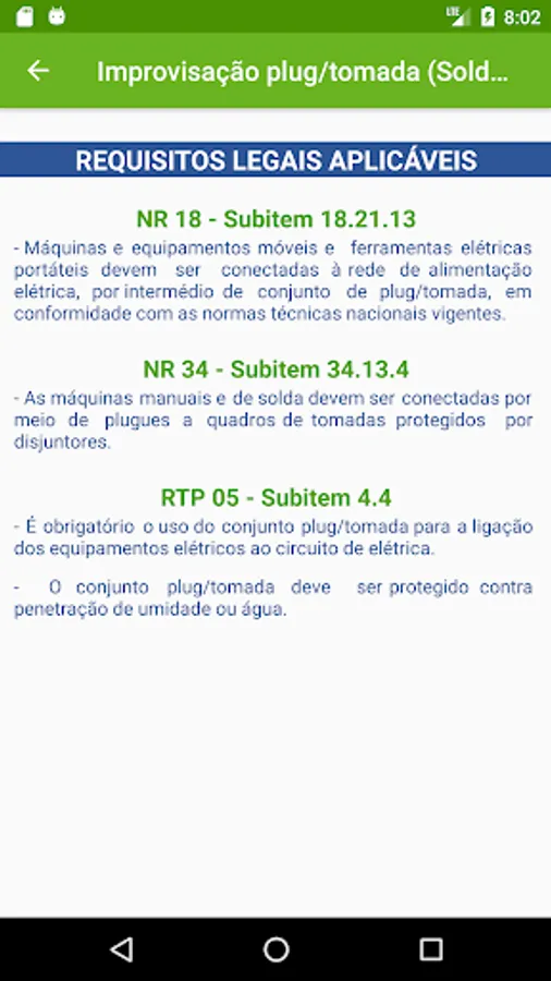 This application was elaborated with the objective of delivering technical knowledge in Occupational Safety to the professionals of the area, in order to be applied immediately to the identification of the development of activities in the field, in the civil construction or other branches of services, helping the organization in the implementation of an effective Risk Management, taking into account the Applicable Legal Requirements and correction of possible nonconformities in the management system.