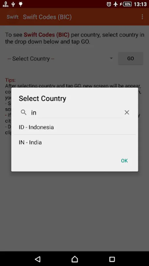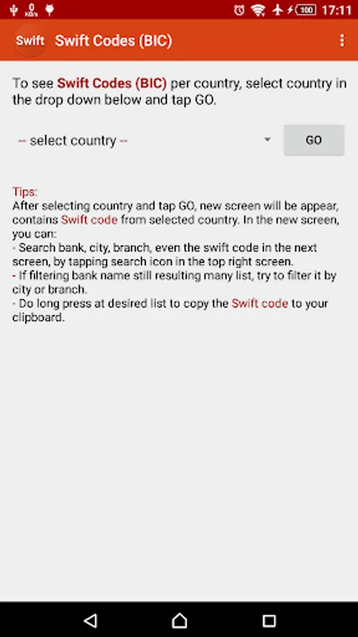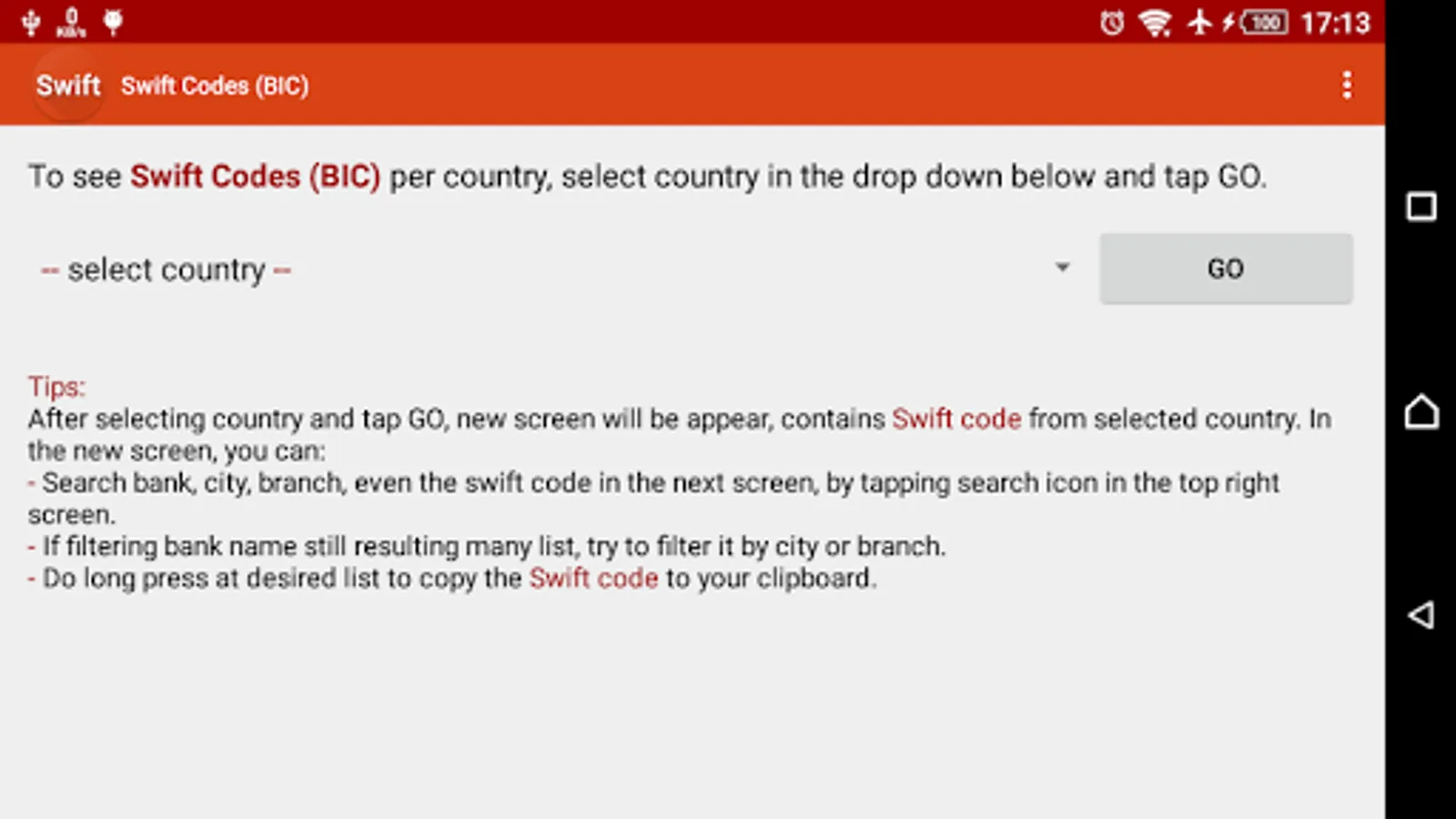 This app contains almost all Swift Codes data from bank, financial institution and non-financial institution all around the world.
