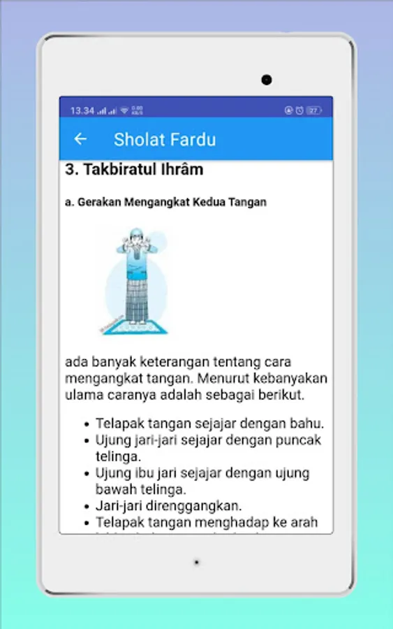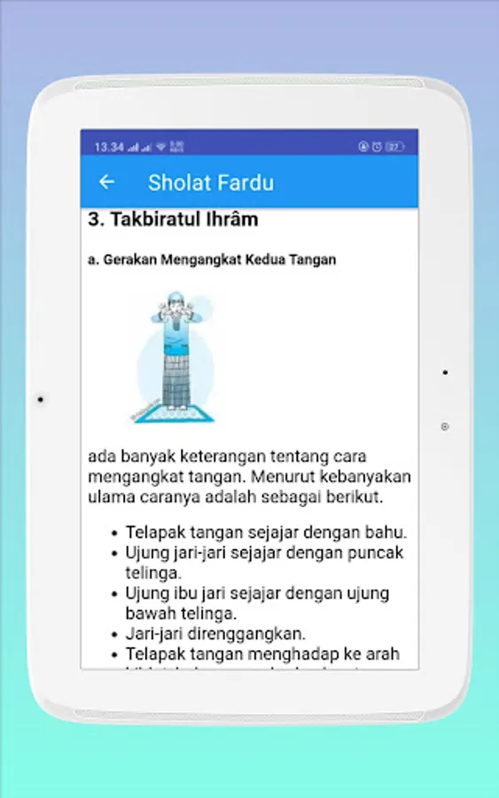 Prayer is one of the worships that must be done by Muslims. Prayer consists of 13 pillars that must be done correctly and perfectly. The pillars of prayer include movements such as takbiratul ihram, bowing, i'tidal, prostration and others. Prayer also has very good benefits for our physical and mental health. Prayer can help reduce stress and increase our concentration in carrying out daily activities. and calm the mind. I hope we can istiqomah to pray