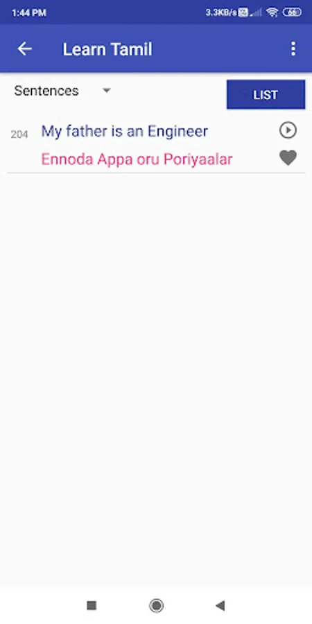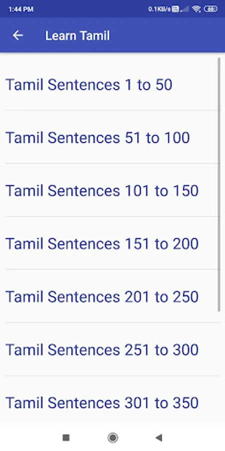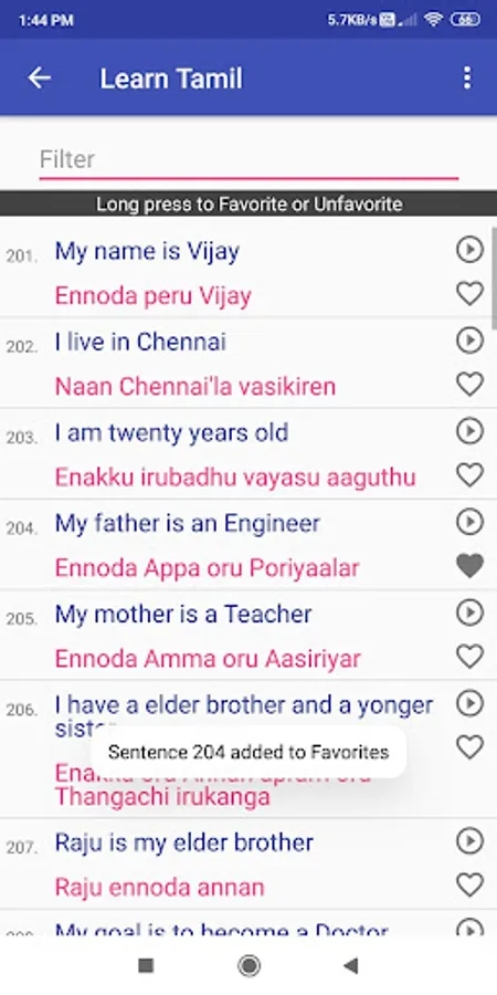 This app helps you to learn spoken Tamil through English without having to learn Tamil letters. It has more than 550+ daily used sentences with audio and