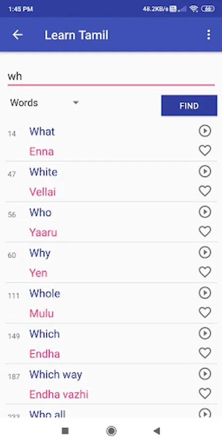 700 Tamil words with colloquial pronunciations, so you can successfully learn Tamil on your own by downloading this app.