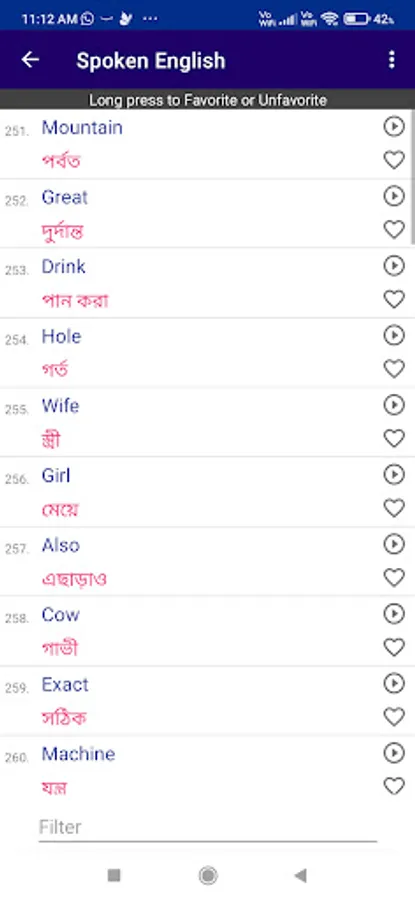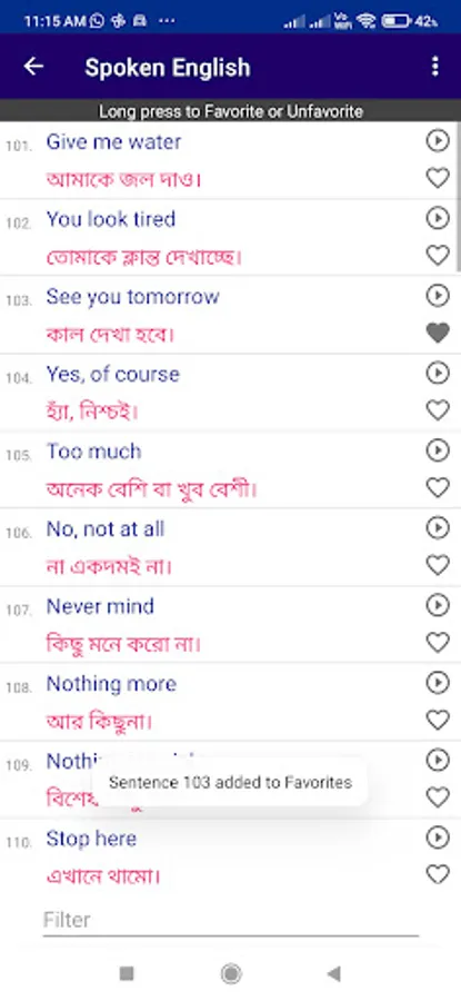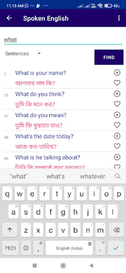 This app helps you to Learn English through Bengali. It has 300 English words & 280 English sentences with audio, so you can utilize this app to learn the basics of English with proper pronunciation. Download this app now to Learn English on your own.