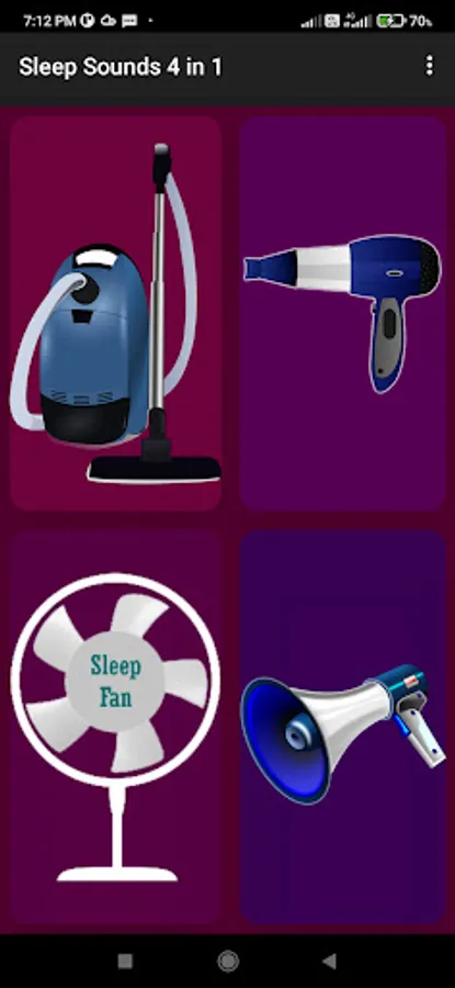 It is a 4-in-1 app for you, it has Vacuum Cleaner sounds, Hair Dryer Sounds, Fan Sounds, and Air horns, all these white noises help to sleep fast. You can also set the timer to automatically switch off the device sounds.
