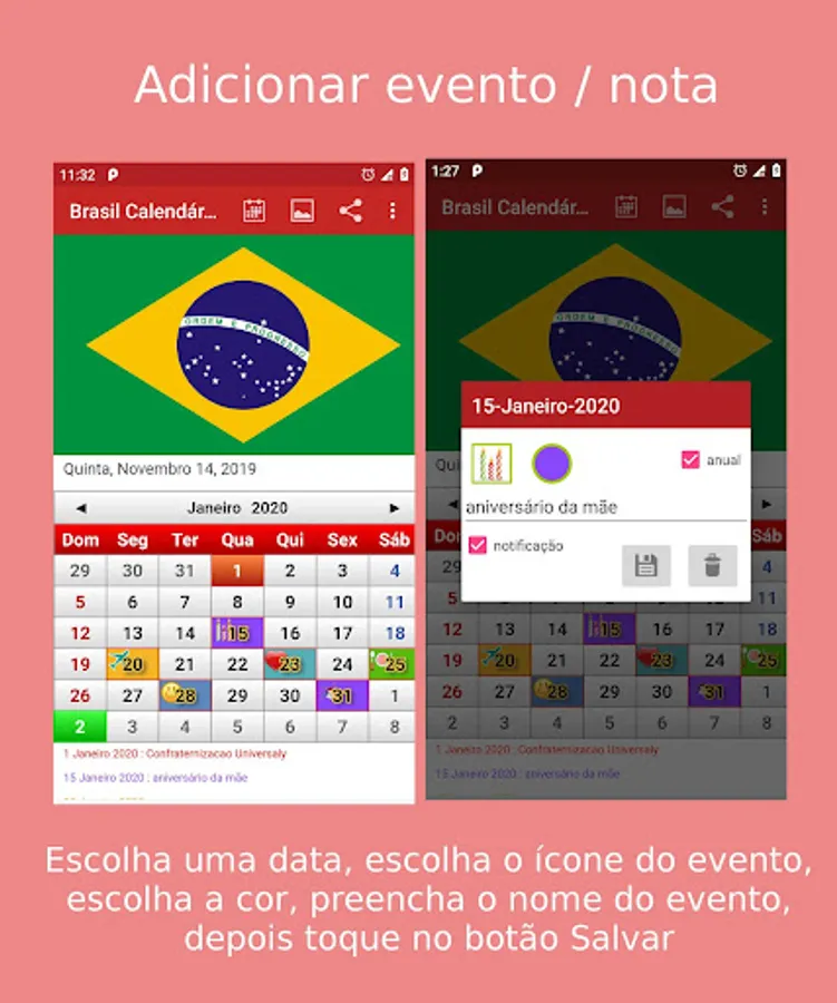 - Você pode mostrar o calendário com sua foto para outras pessoas.