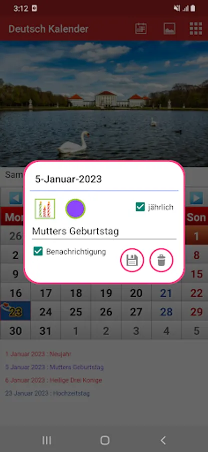 - Benachrichtigung Ereignis Erinnerung, wenn die Zeit ankommt