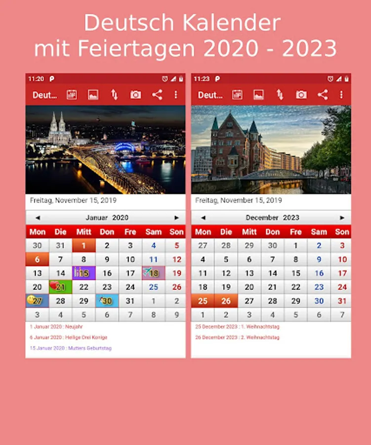 Deutsch Kalender mit Feiertagen 2022, 2023, 2024, 2025