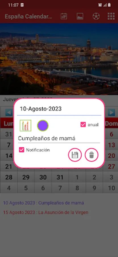 - Crear evento o nota con el icono amor, cumpleaños, tarea, anillo.