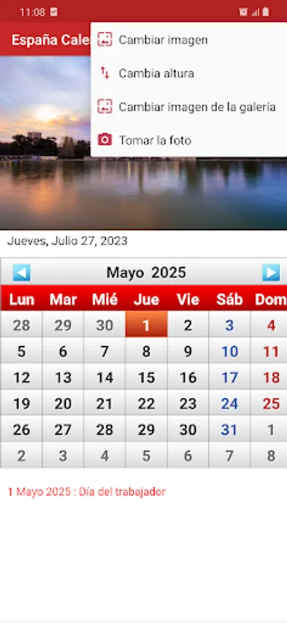 - cambiar el calendario de imágenes con su propia imagen y establecer esta altura.