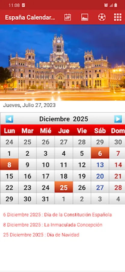 España Calendario 2023 con lista de festivos 2023, 2024, 2025.