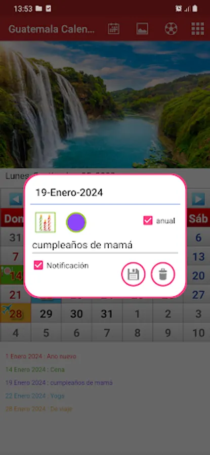 - Crear evento o nota con el icono amor, cumpleaños, tarea, anillo.