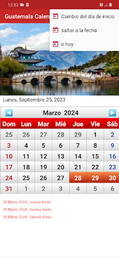 Guatemala Calendario con lista de festivos 2023,2024,2025.