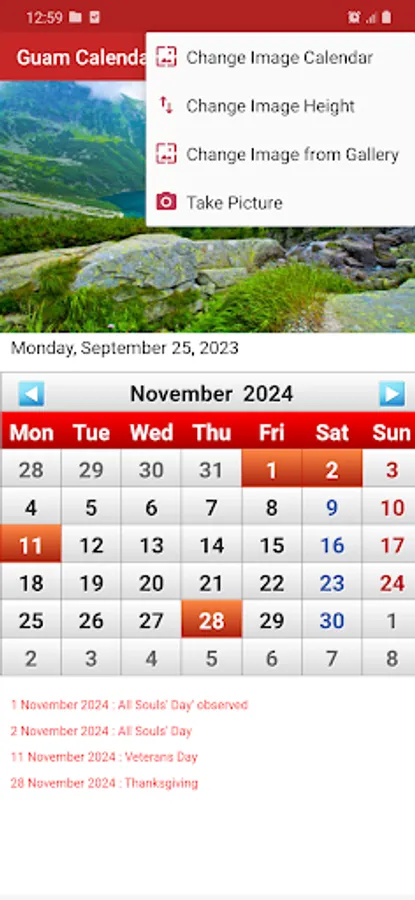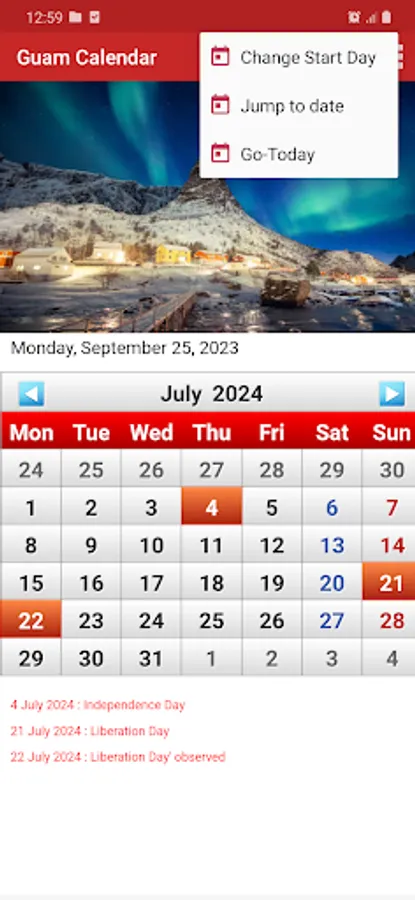 Guam Calendar 2023 with Holidays 2023 - 2025.