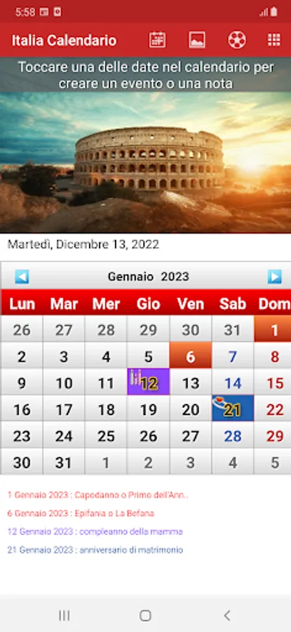 Calendario Italia 2023 con giorni festivi 2023, 2024, 2025.