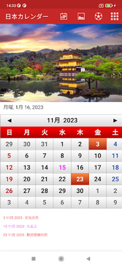 Japanese calendar with public holidays 2023, 2024 and 2025.