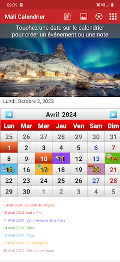 - create event or note with love, birthday, task, ringtone icon