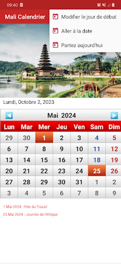 Mali Calendar with public holidays 2023, 2024, 2025.