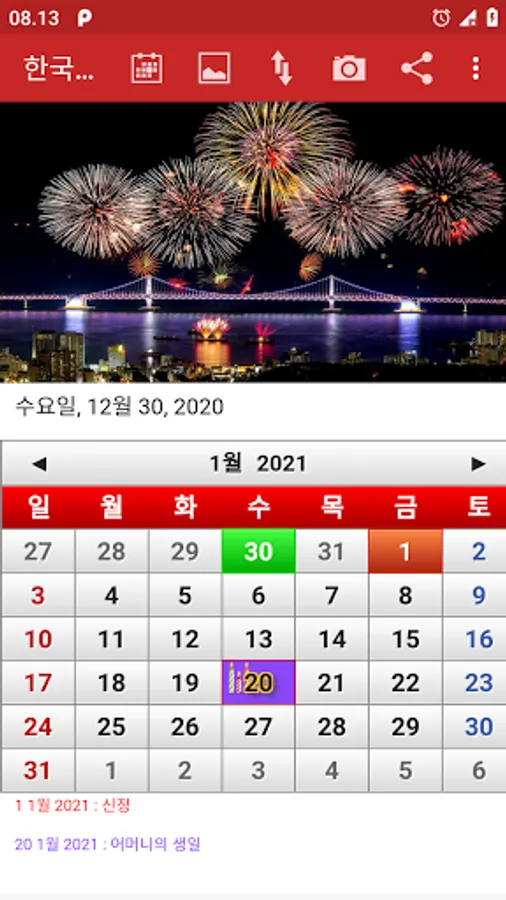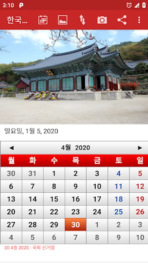 National calendar 2020, 2021, 2022, 2023 Korea.