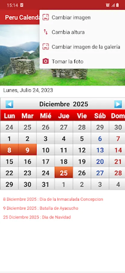Peru Calendario con lista de feriados 2023, 2024, 2025