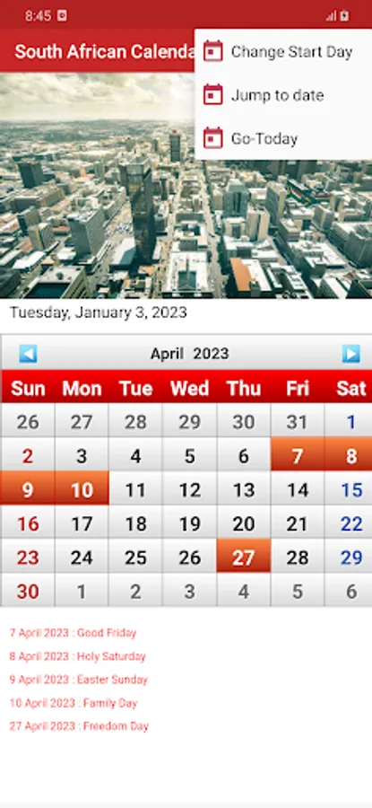 South African Calendar 2023 with Holidays 2023 - 2025.