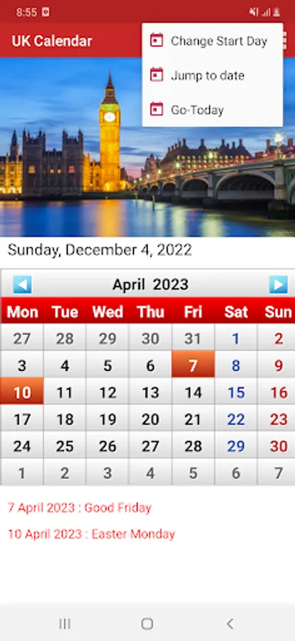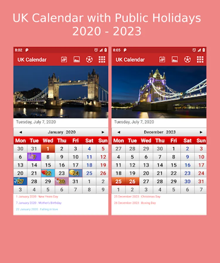 UK Calendar 2023 with Holidays 2023 - 2025.
