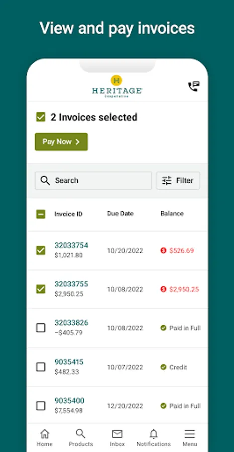 Easily look up all your Heritage Cooperative account information. Find all your previous purchases or view and pay your invoices in a few clicks.