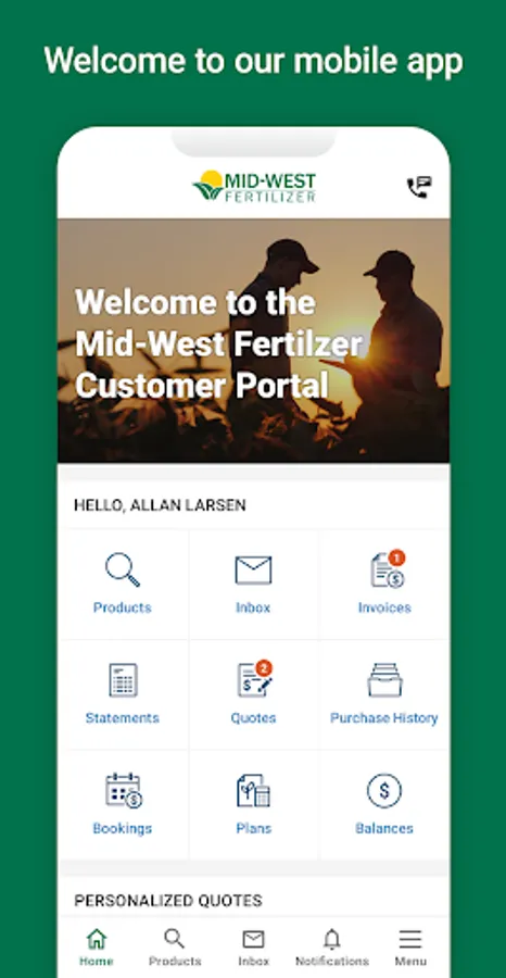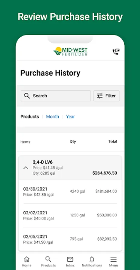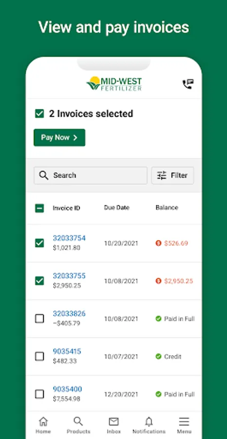 • Easily look up all of your Mid-West Fertilizer account information. Find all of your previous purchases or view and pay your invoices in a few clicks.