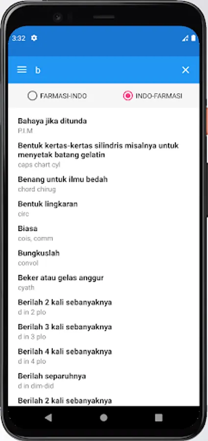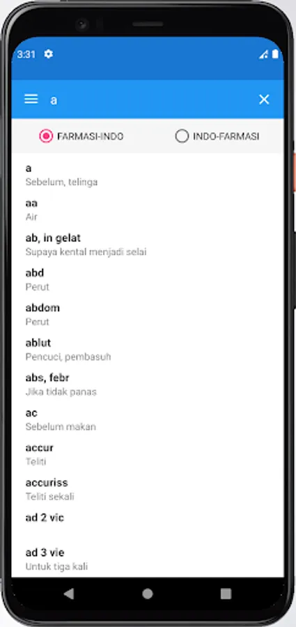 This offline Pharmacy term dictionary is an application that contains Pharmacy terms equipped with a description / meaning of each term and arranged alphabetically.