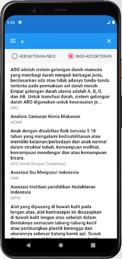 This offline medical term dictionary is an application that contains medical terms, complete with a description / meaning of each term and arranged alphabetically.