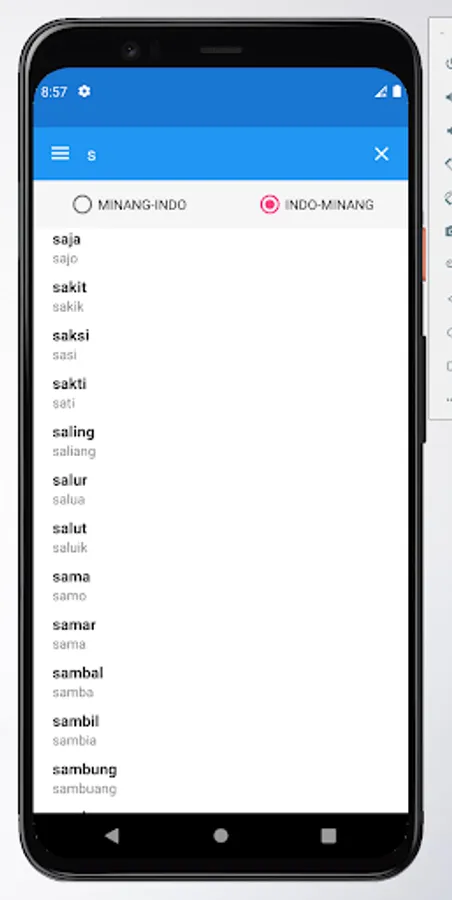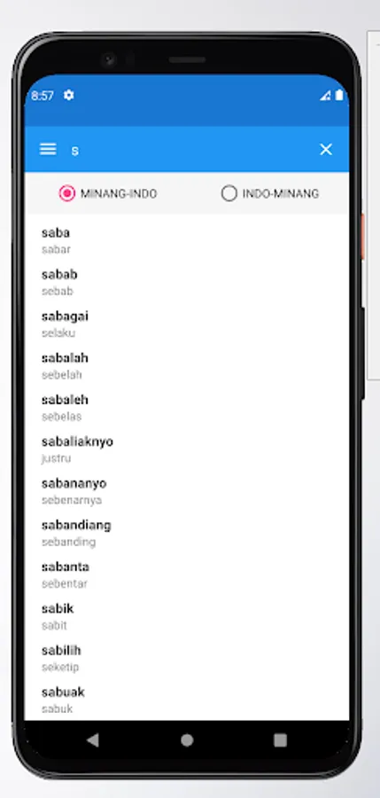 This application provides a variety of vocabulary and terms in Minang language. If you have trouble finding the meaning of a term in Minang language, please try this offline application. There are tens of thousands of words in the Minang language and their meanings.