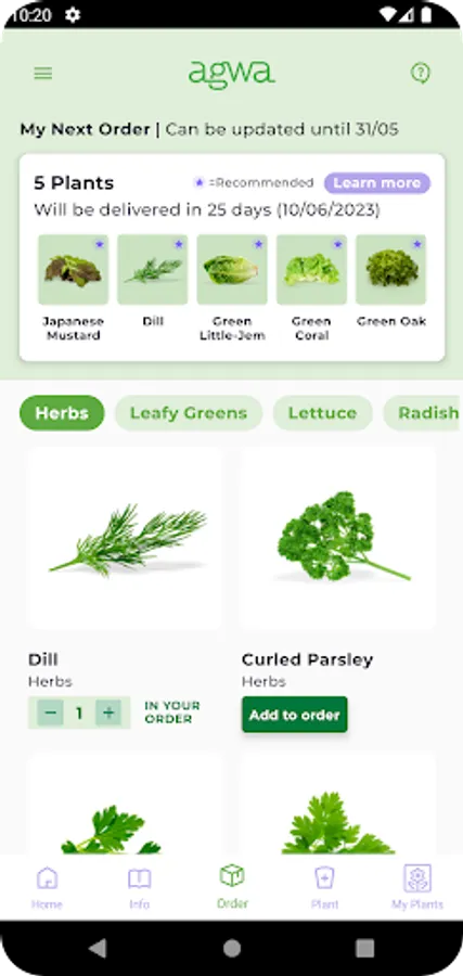 Once paired with a compatible Agwa device, the App will link to Agwa’s AI Virtual Agronomist, which takes care of your plants 24/7. The App will then let you know everything you need to know about them, help you plan your planting, and let you choose which plant pods will be shipped to you this month.