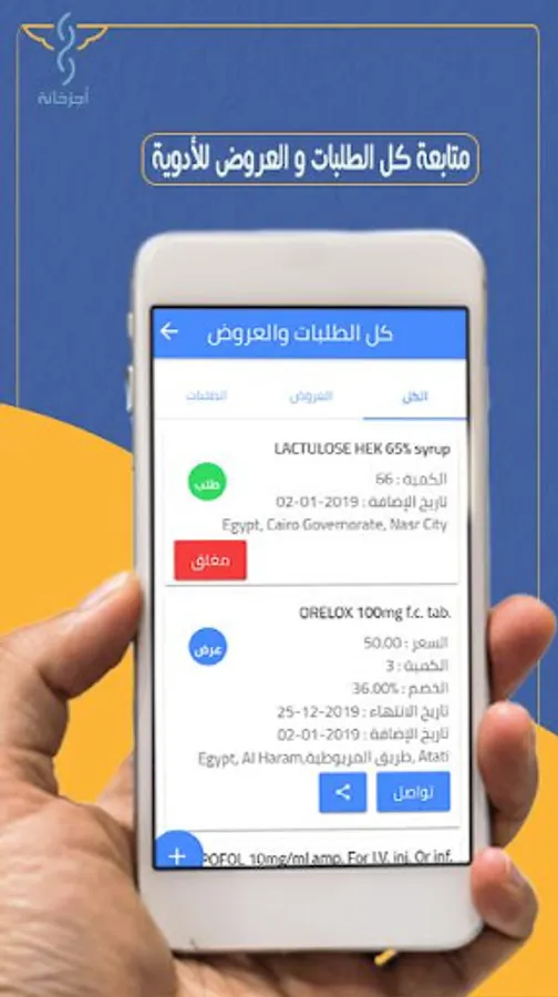 Through the application of Ajzkana to exchange drugs between pharmacies estimated to drop offers on drugs, the date of validity near the end to sell quickly without loss to a pharmacy needs second, while at the same time estimated on any medication you are deficient in the presentations that the pharmacies surrounding you on the application, You will lose any prescription from your hands in a medicine that is deficient in your pharmacy and you will not lose the value of the drugs whose validity date is nearing the end.