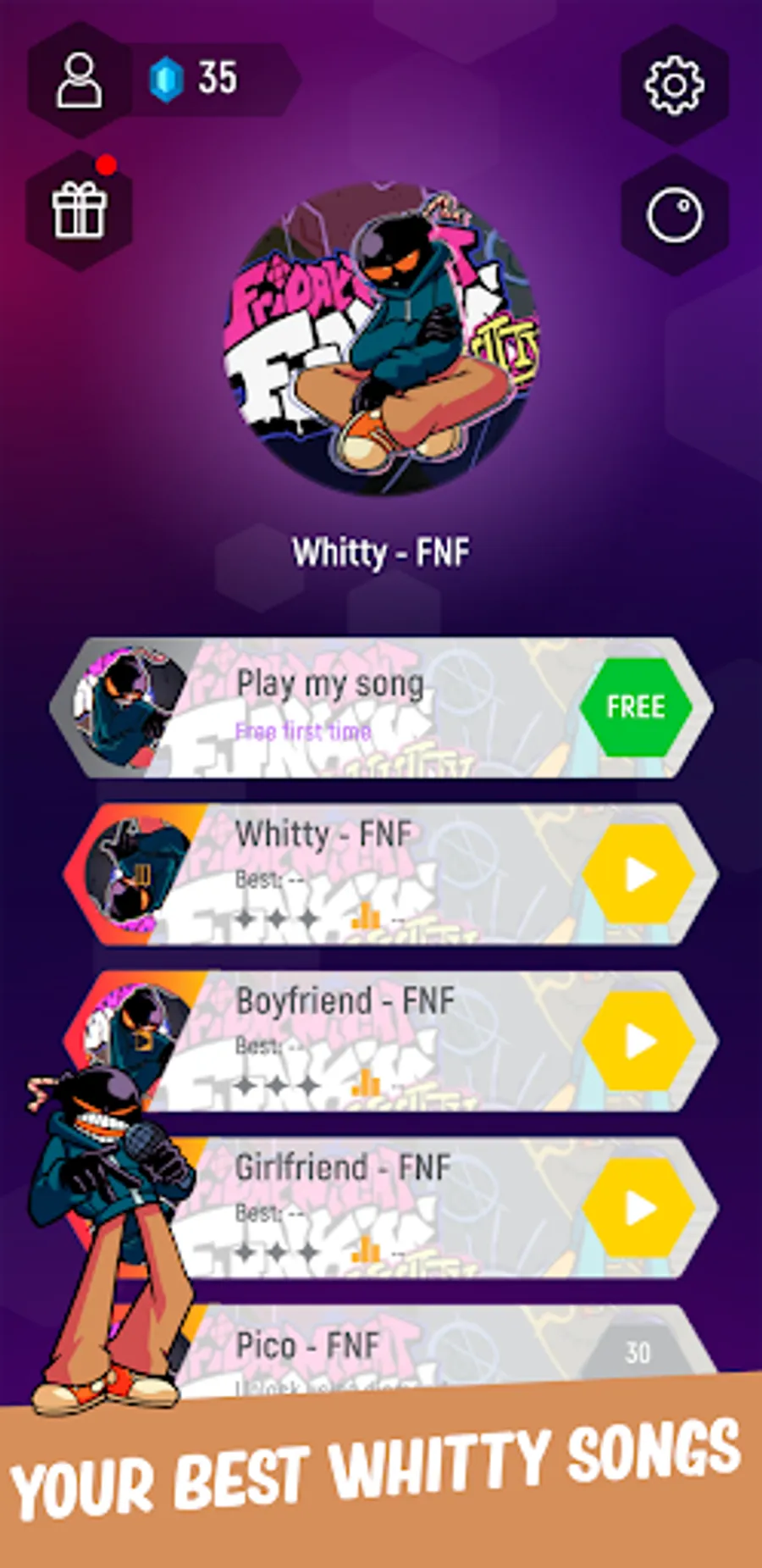 3. Enjoy the Whitty FNF tiles hop music game and challenges designed for each song.