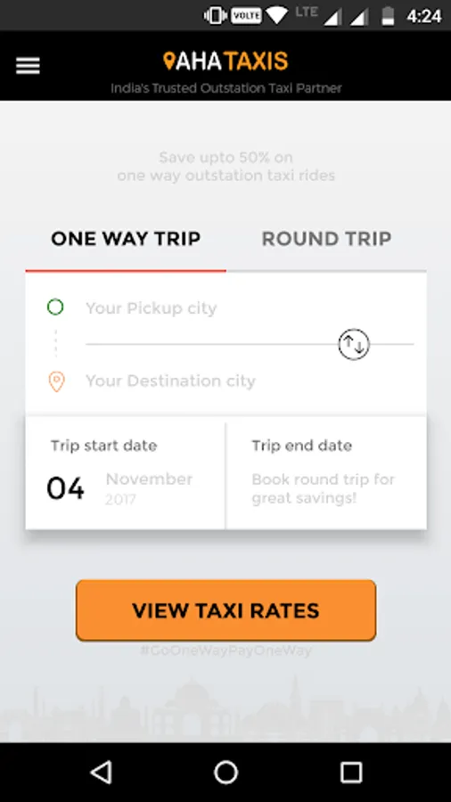 1. Just open the AHA Taxi app or website and tell us whether you want a one-way cab or round trip cab