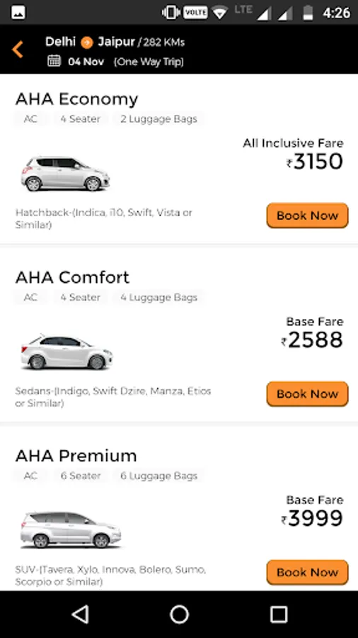Want to go for more comfort on your trip? Book AHA Comfort taxi with enough boot space to carry luggage. With AHA Comfort option, you can take Etios / Dzire / Xcent or similar.