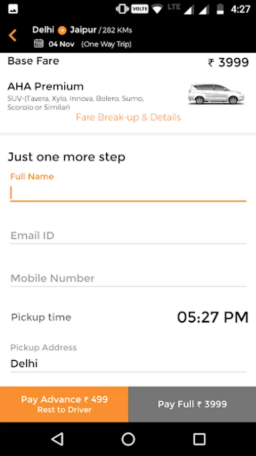 4. Tell us details like your name, E-mail ID, mobile no., pickup time, pickup address and drop address.