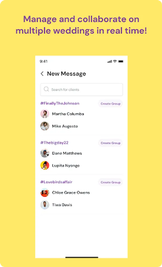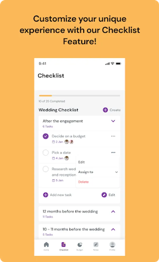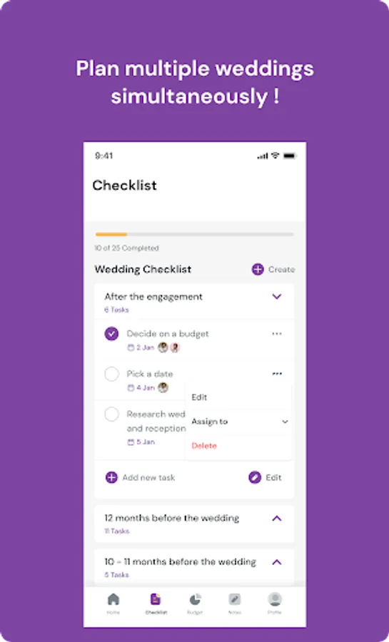 Assign Wedding Tasks: Wedding planners and couples are able to create and assign tasks within our wedding planning app!
