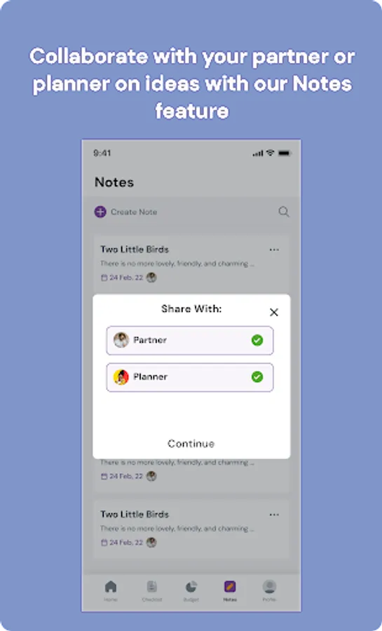 Wedding Notes & Ideas: Create and share notes with your wedding planner and/or partner within the app.