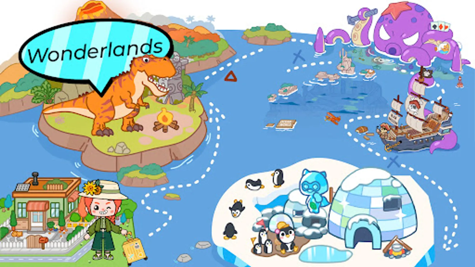 Experience The City and all its bustling fun! Cook in style at the revolving restaurant, keep the streets clean at the Police Department, or take a relaxing walk in the city park. Outside The City, more adventures await! Ever wanted to explore a medieval Viking town? A magical dragon island? Play dinosaur games in a Jurassic park? In Aha World you can do and be anything. Come and unlock the hidden mysteries and secrets across all the locations. Aha World's building games and dress up dolls mean if you can dream it, you can make it!