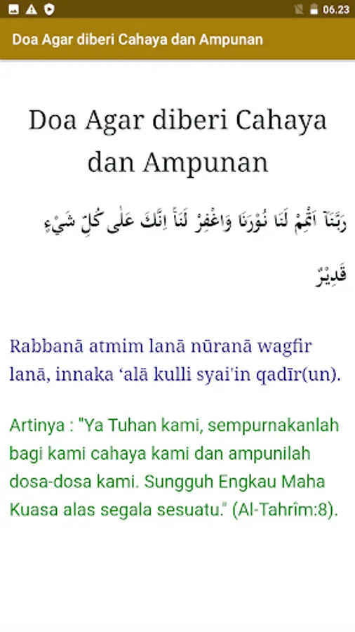 Collection of Al-Quran Prayers: Discover various prayers contained in the Koran, including daily prayers, prayers for protection, and more. Each prayer is accompanied by Latin text and Indonesian translation.