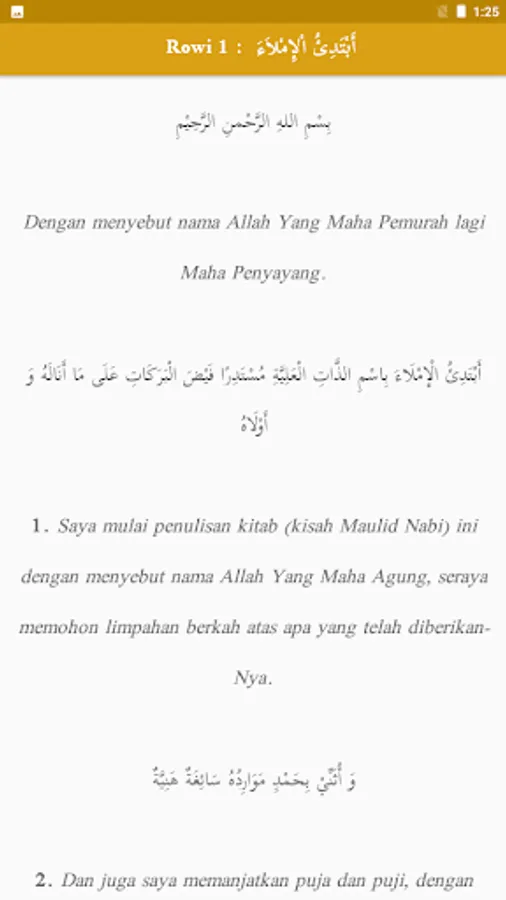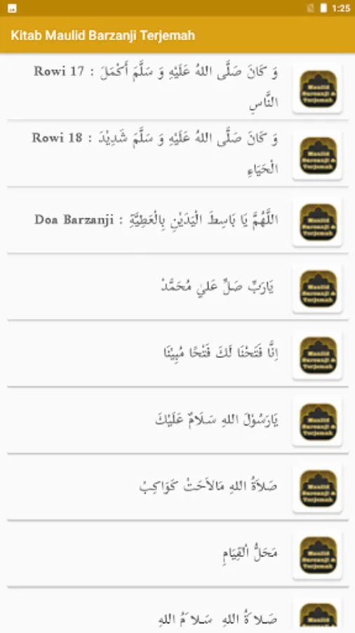 The application of the Book of Mawlid Barzanji and Translation is an application that contains text and translations of the Book of Mawlid Al-Barzanji. This application can help in studying Mawlid Barzanji. Some of the contents in this application include: