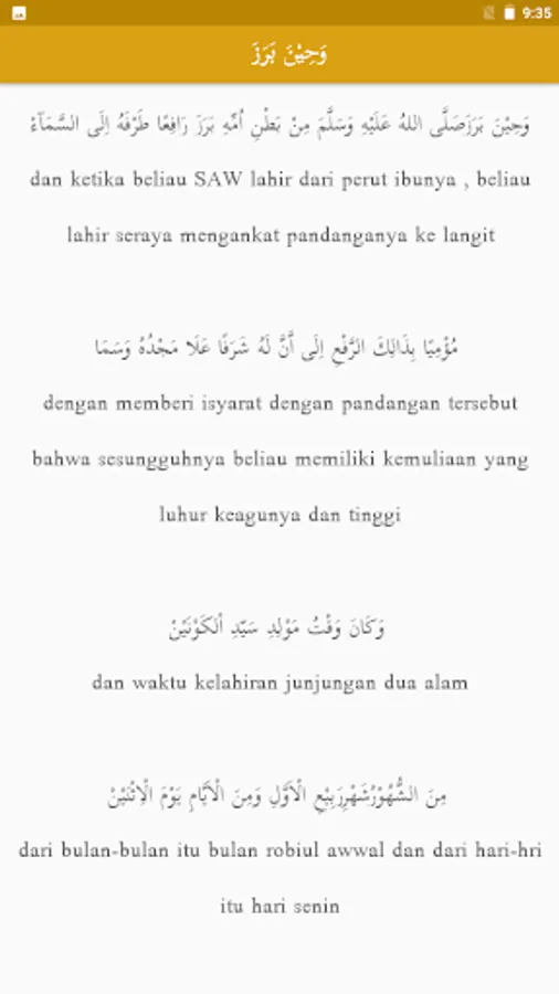 This Translated Mawlid Simthuddurar Book application is an application that contains Arabic text and an Indonesian translation of the Mawlid Simtudduror book. Some of the contents in this application include:
