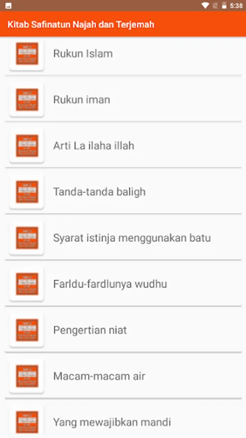 The application of the Book of Safinatun Najah and Translation from Ahbar Studio is an application designed to assist users in studying the book of Safinatun Najah, which is a guide book in the science of fiqh.