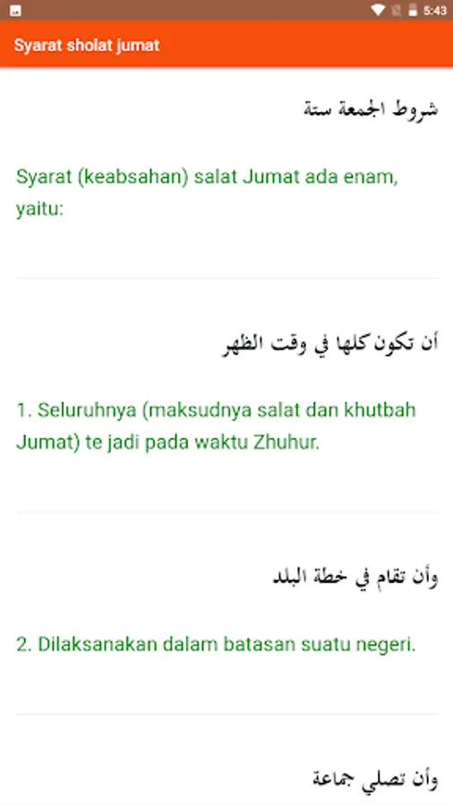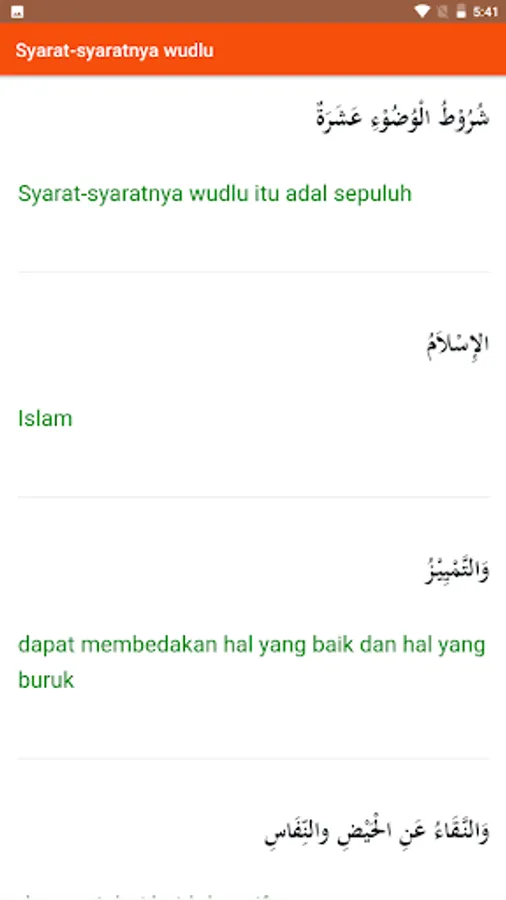 In this application, the book of Safinatun Najah is presented in its original Arabic text, complete with an Indonesian translation. This translation makes it easier for users who are not proficient in Arabic to understand the contents and laws contained in the book Safinatun Najah.