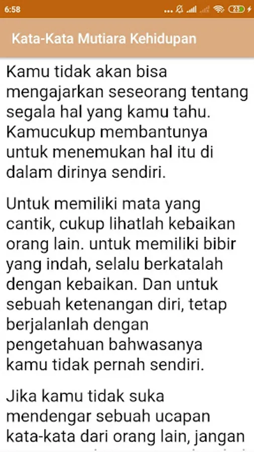 Aphorisms application is an application that contains aphorisms and life words of wisdom with various topics that can be understood their meaning to be used as inspiration and motivation for life. You can also use these words of wisdom and pearls of wisdom as WA Status / FB Status, IG captions, or as tweets on Twitter or you can also send them to friends and people you care about. There are thousands of aphorisms that you can inspire in this application.