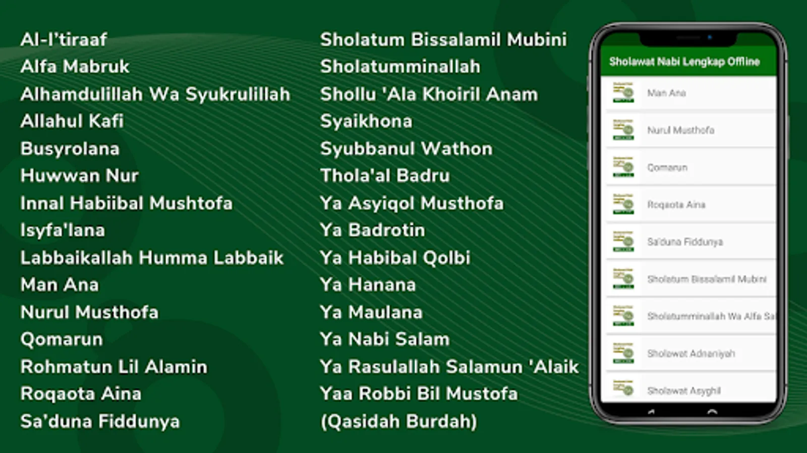 Some of the titles of Sholawat Nabi and Sya'ir in this application include:
