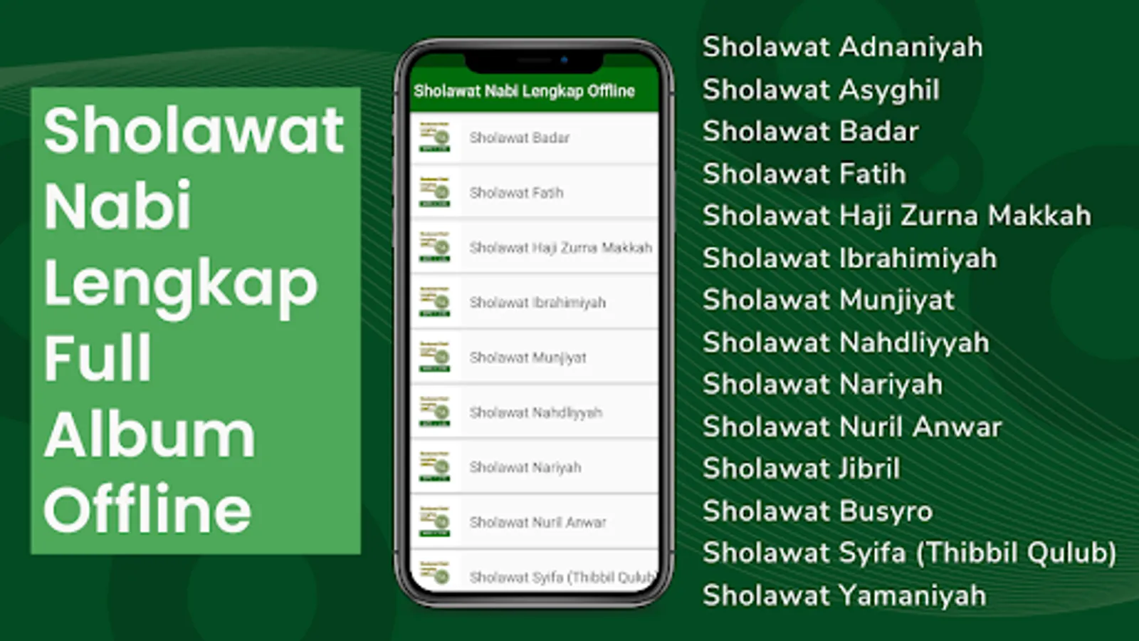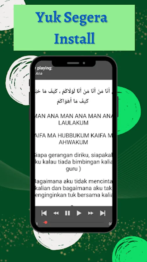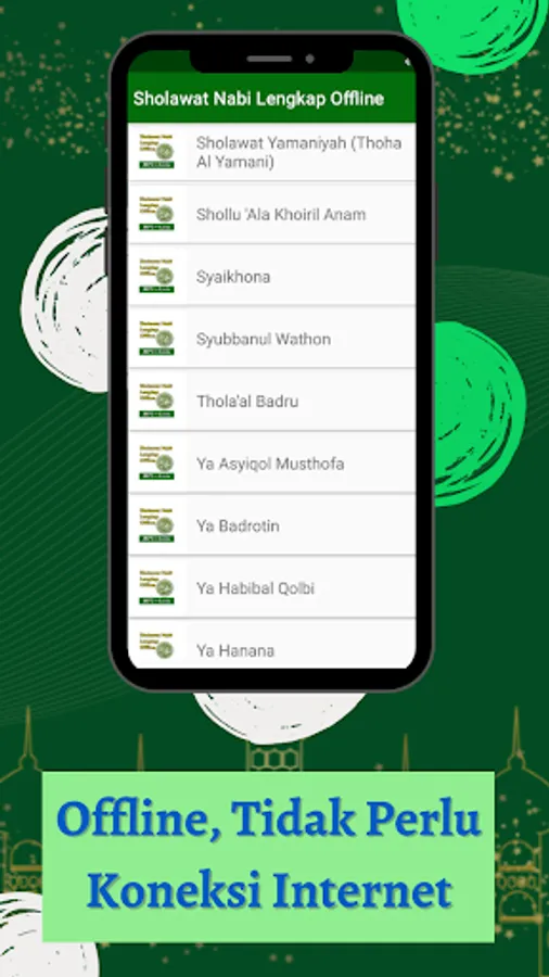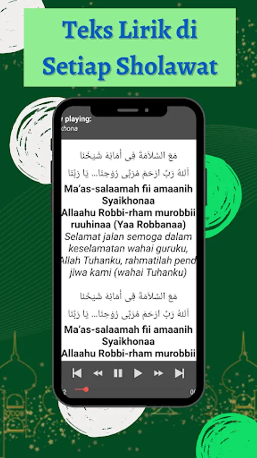 This application is made for you Sholawat fans so that you can directly play the Prophet's Prayers and Religious Songs from your smartphone without using an internet network. In addition, the advantage of this application is that there are lyrics and translations of each song that is played, so that they can be used to help and guide you so that you can participate in singing Sholawat.