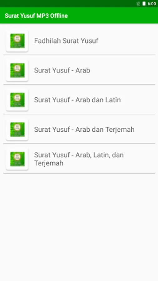 The Surah Yusuf Audio Offline application is an application that contains an MP3 audio recording of the recitation of Surah Yusuf in the Qur'an. This application allows users to listen to the recitation of Yusuf's letter without the need for an internet connection. Possible features of Surah Yusuf MP3 include: